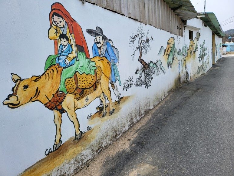 사당으로 가는 길 마을 담벼락에 그려진 벽화가 수준 이상입니다.