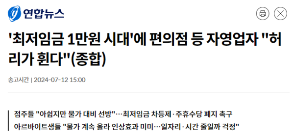 “한국경제 견뎌낼 수 있나” “소상공인 부담 감당할 수 있나” “과속질주 ”편의점 문 닫을 판“ “직원 줄이거나 가게 문 닫아야죠”…등의 기사 제목들이 쏟아져 나왔다.